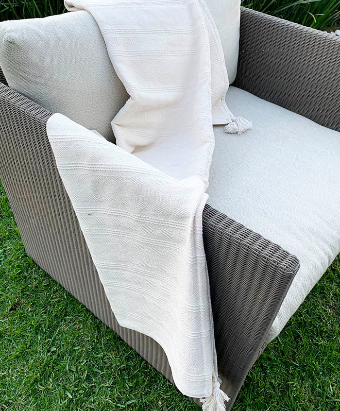 Funda de cojín en diferentes colores con diseño de nudos tono contrastante. Elaborado 100% en algodón.