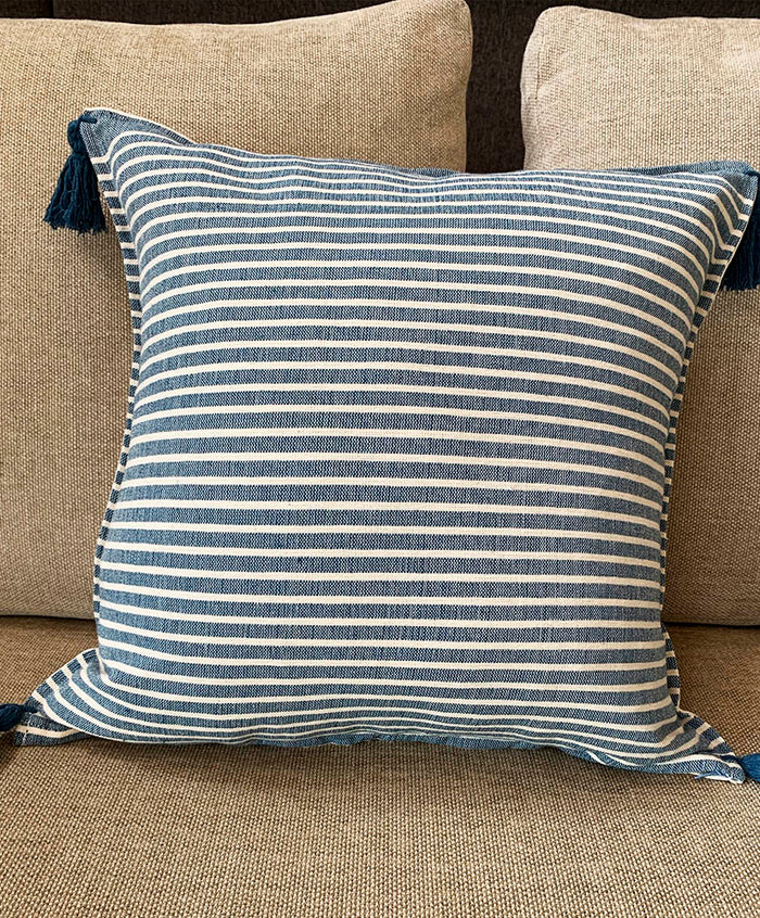 Funda de cojín en diferentes colores con diseño de hilos en el mismo tono. Elaborado 100% en algodón.