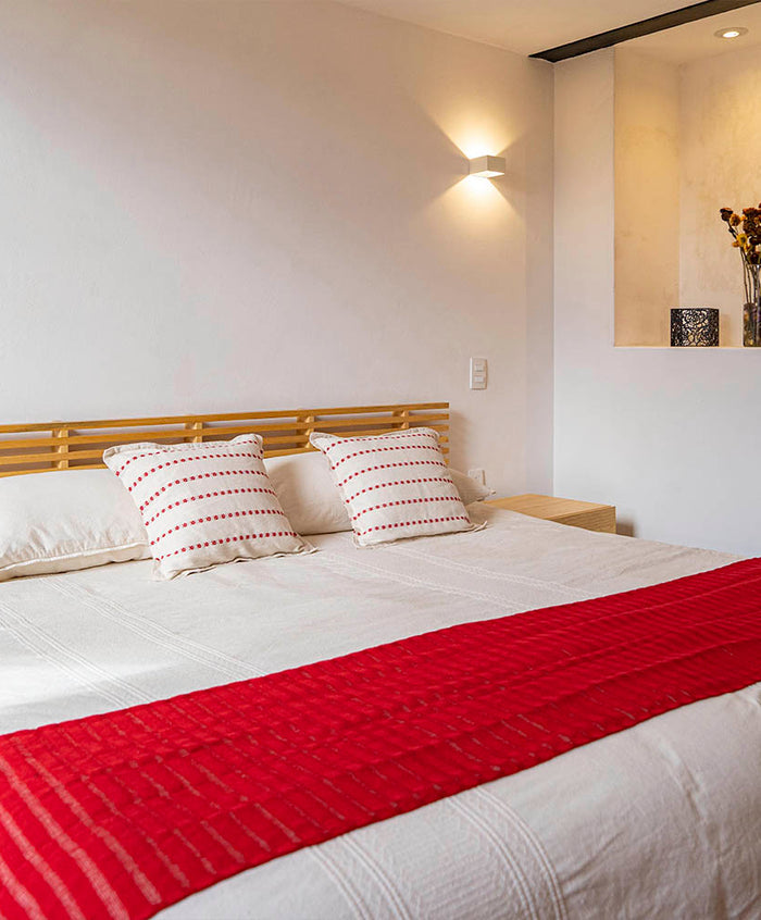 Juego completo de sábanas elaborado 100% en algodón por artesanos oaxaqueños. Incluye: